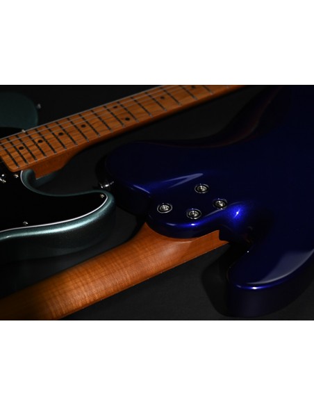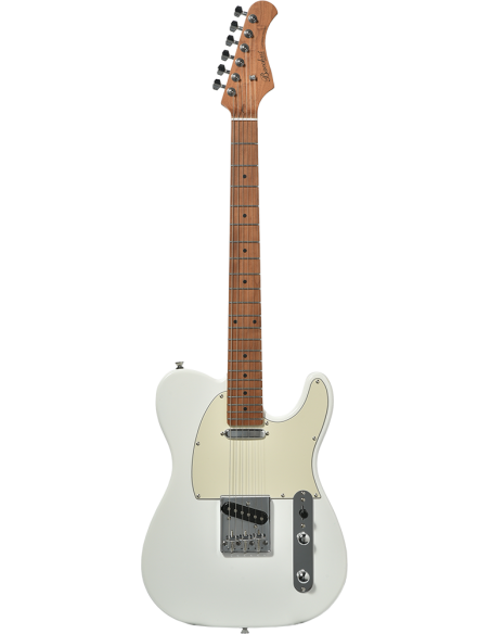 Le corps est en peuplier, un bois léger souvent sous-estimé, mais qui offre un son équilibré avec des médiums bien présents, parfait pour les styles rock, pop ou blues. Le manche et la touche sont en érable torréfié (roasted maple) : chauffé à haute température, ce bois gagne en stabilité et en résonance. Résultat ? Un toucher sec et rapide, une meilleure tenue d’accord, et un timbre plus chaud et vintage. Du matos qu’on retrouve d’habitude sur des modèles bien plus chers.