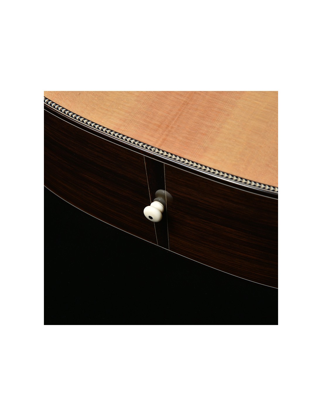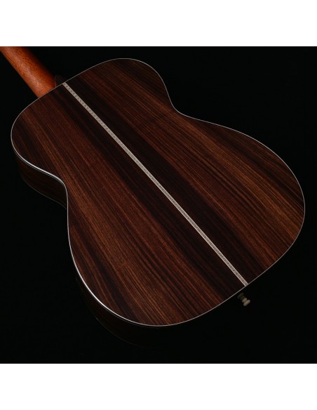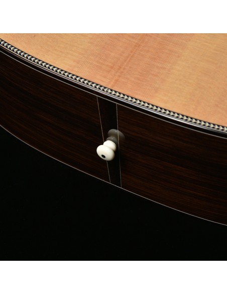 Le fond et les éclisses en palissandre indien enveloppent le son d’une profondeur chaleureuse, avec ces graves riches et ces harmoniques soyeuses qui font rêver les amateurs de belles acoustiques.