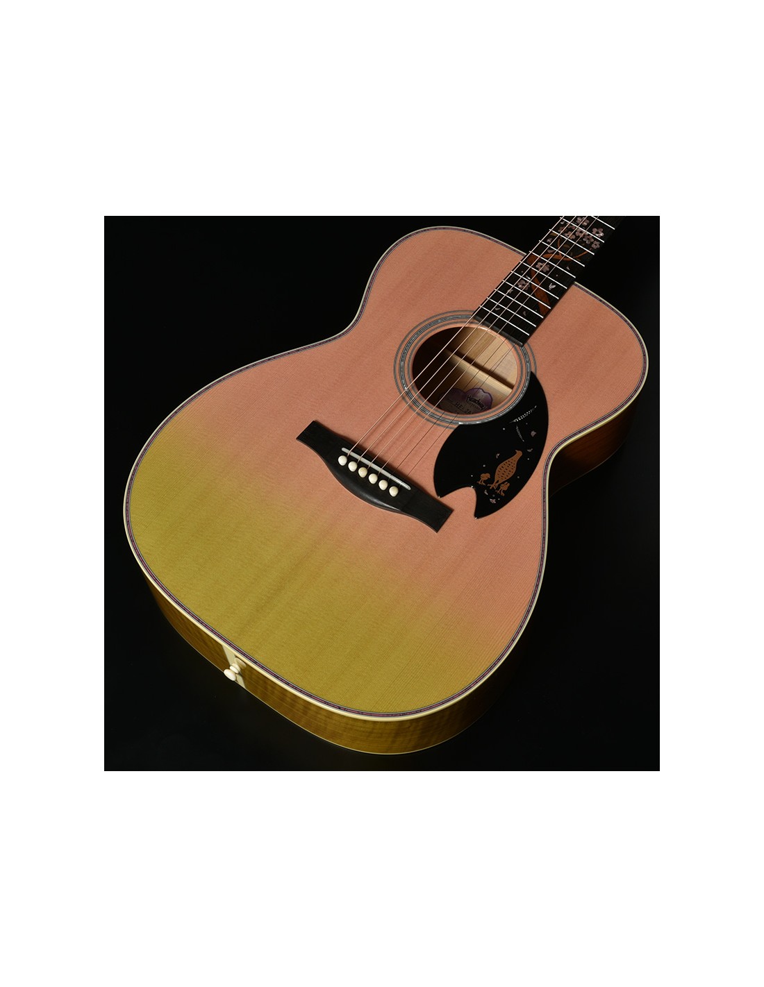 • Dos & éclisses en Yamazakura (cerisier japonais) avec centre en érable (Kaede) : une combinaison rare qui apporte chaleur, complexité harmonique et une réponse très musicale. Le cerisier japonais donne une signature sonore douce et nuancée, idéale pour le fingerstyle.