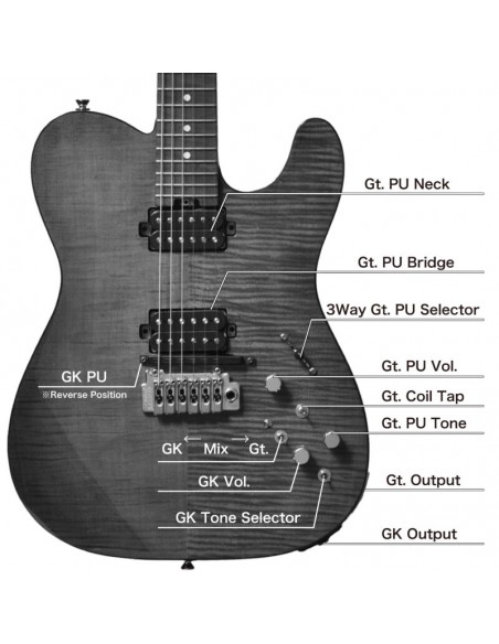 • Pickup: Humbucker Bacchus GK-5 preinstallato per una perfetta compatibilità con i sintetizzatori BOSS®.