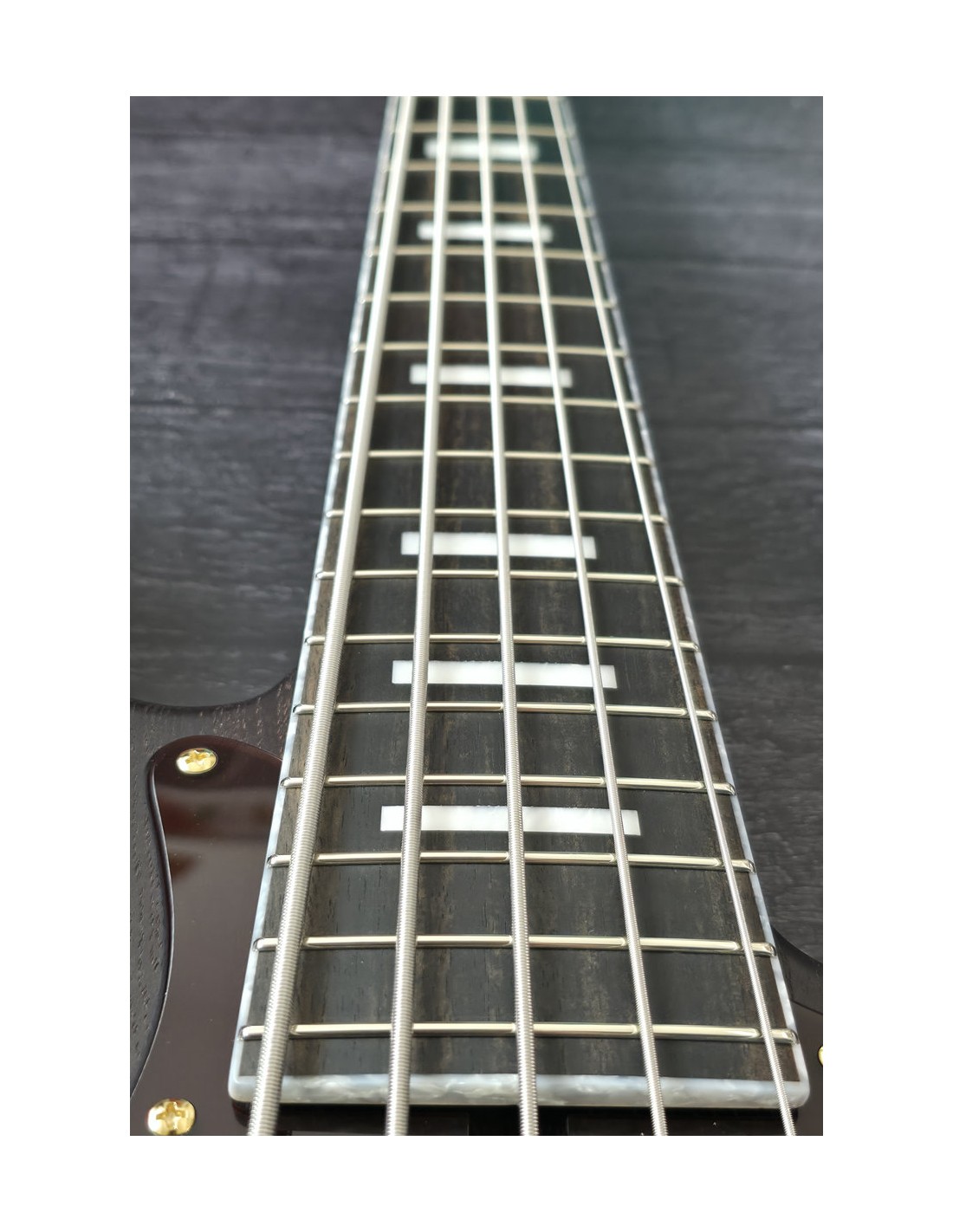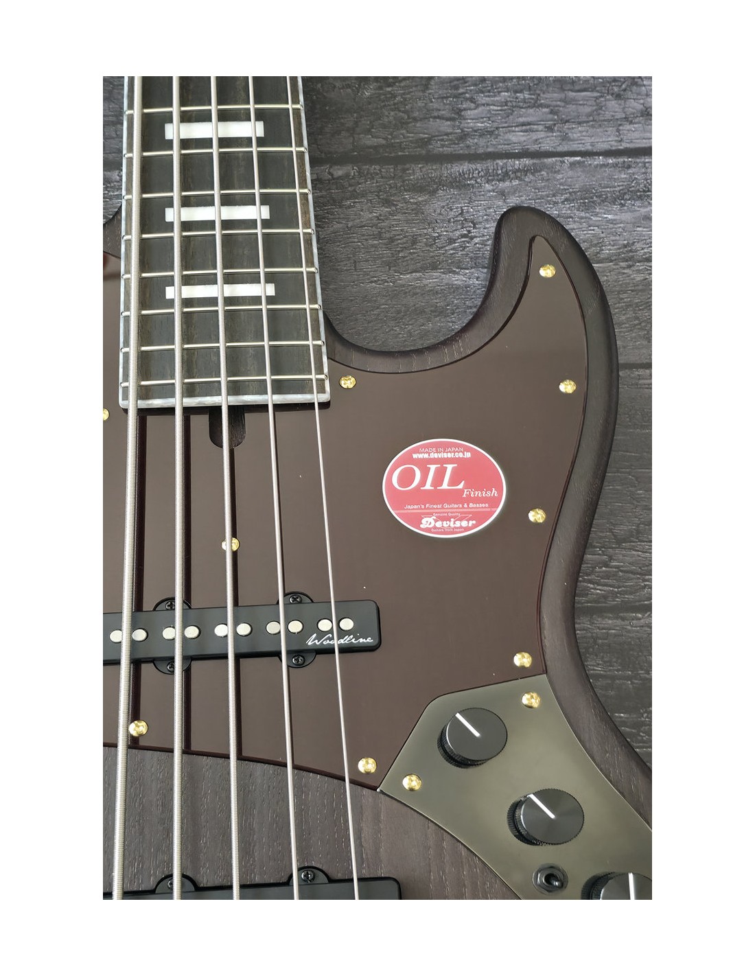 Equipped with Bacchus JB-ALV II-5 pickups and an Aguilar OBP-2 preamp, it covers a wide sound spectrum, from vintage to modern.