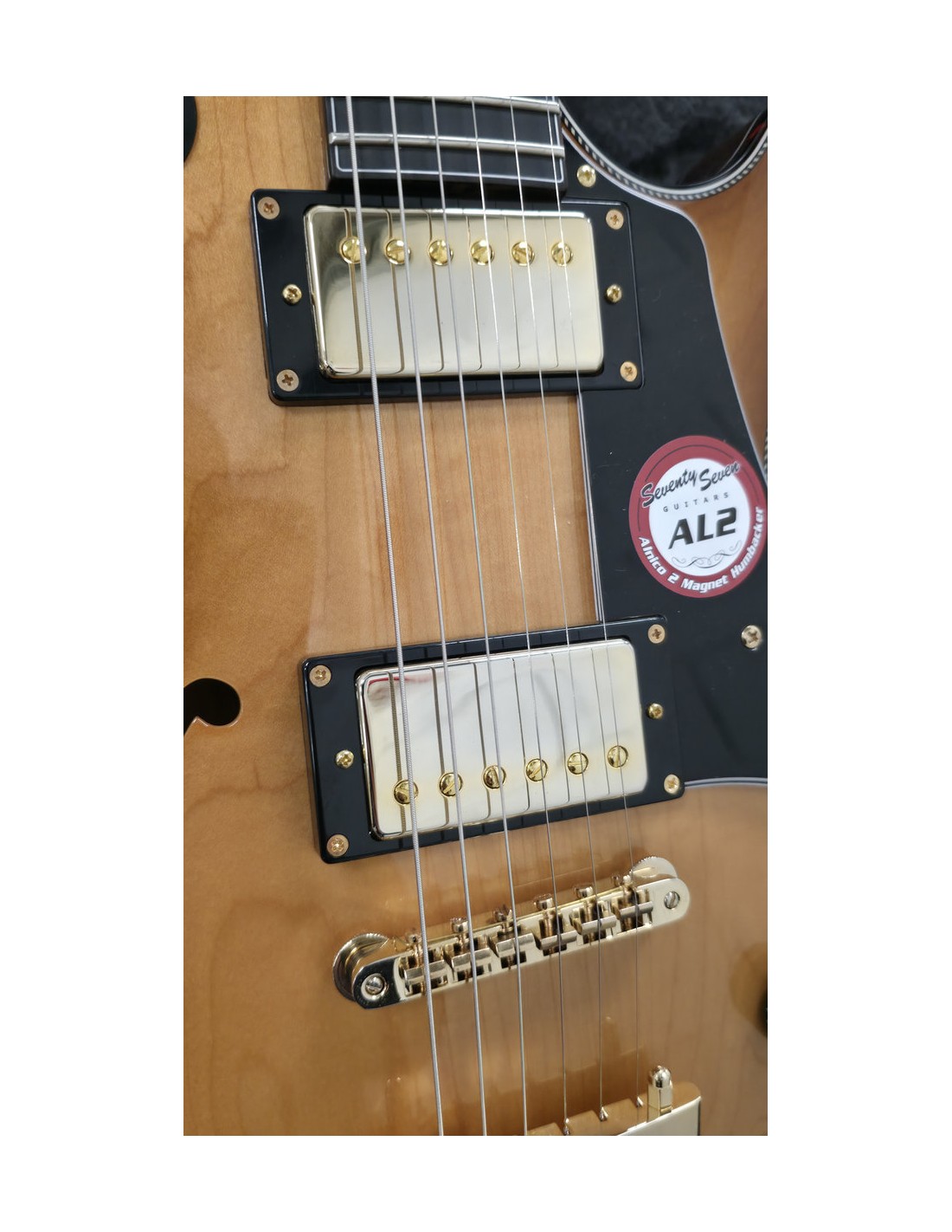 Equipped with SeventySeven AL2 pickups using Alnico II magnets, the guitar produces sparkling bell-like clean tones with smooth warmth. With overdrive, it delivers a lively and articulate crunch sound that responds beautifully to the player’s touch.